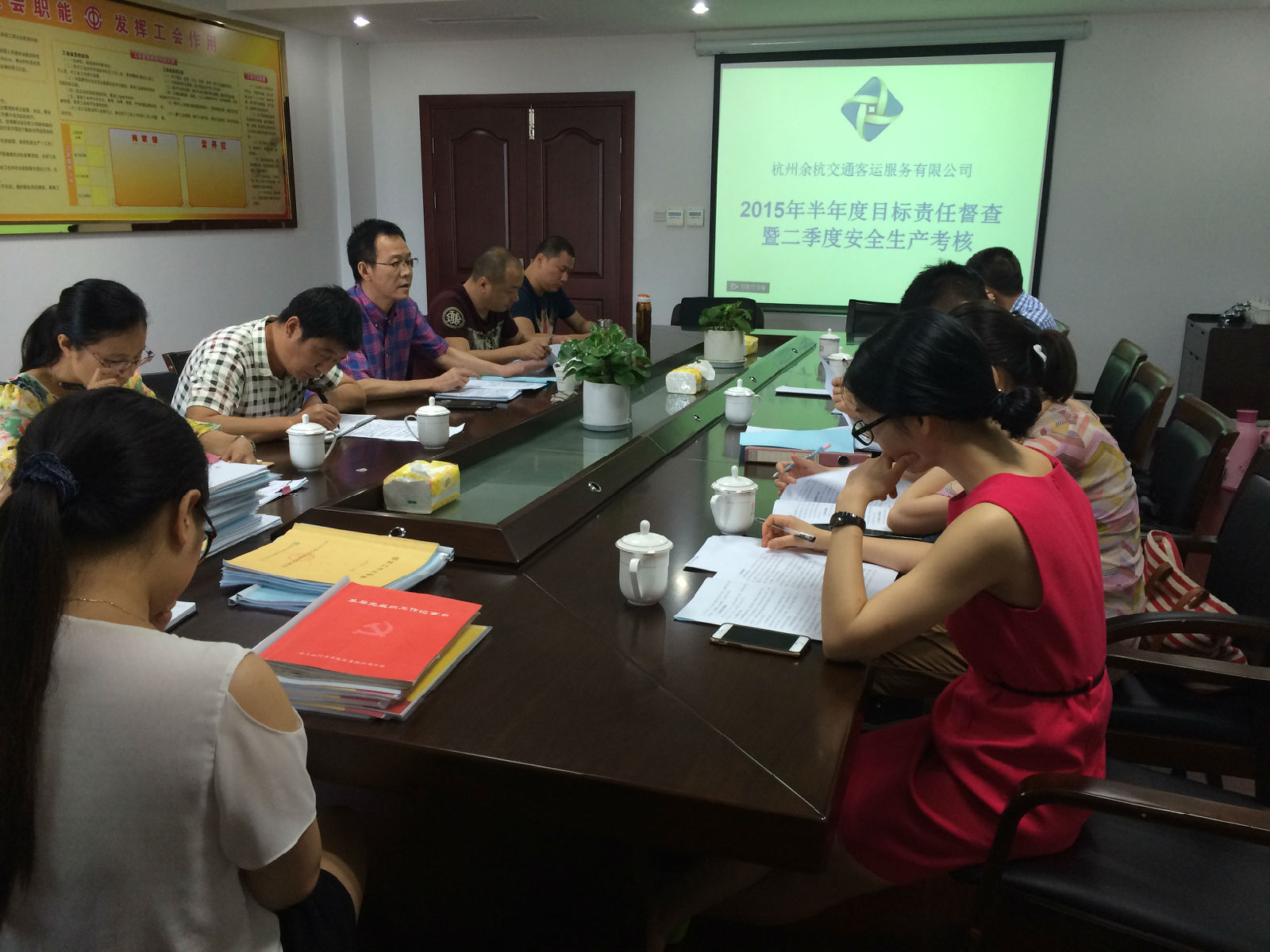 2015年6月25日上午,集团考核小组一行对杭州余杭交通客运服务有限公司开展2015年半年度目标责任督察暨二季度安全生产工作考核。