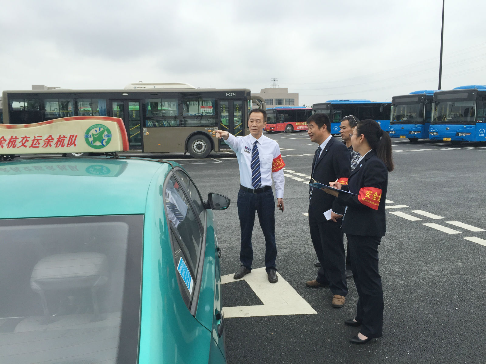 5月21日下午,余杭公交公司副总经理朱小飞带领交运管理部负责人员,到仓前停保基对出租车“三容三貌”及公交站点公交车规范进出站进行突击检查。
