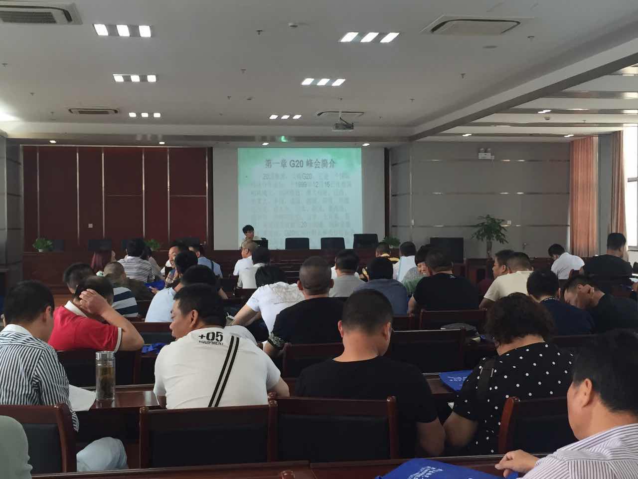 此次培训由杭州“的士”学校专业老师,并特邀余杭区交警支队领导进行授课,主要围绕“办好G20当好东道主”中心主线,从反恐防暴、应急防范、峰会常识、服务礼仪、运营安全等方面进行讲解。培训期间,为了确保良好的课堂纪律,提高授课质量,交运管理部特安排队长进行现场管理。