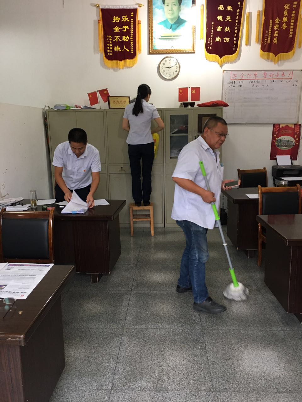 当天,全体工作人员明确职责,上下联动,服从指挥,积极配合。经理唐德忠、副经理陈建娣首当其冲,以身作则,率先垂范,一把扛起锄头除去周边花坛里肆意茂盛的杂草,其他各人员也积极响应,有的拿起扫把、拖把清洁地面,清除楼道垃圾,有的举起鸡毛掸子清除墙角蜘蛛网,有的拿着抹布对办公区域内的各种办公用具及窗户玻璃进行清理除尘,清除卫生死角,有的则将垃圾分类,整个活动全员参与,秩序井然。